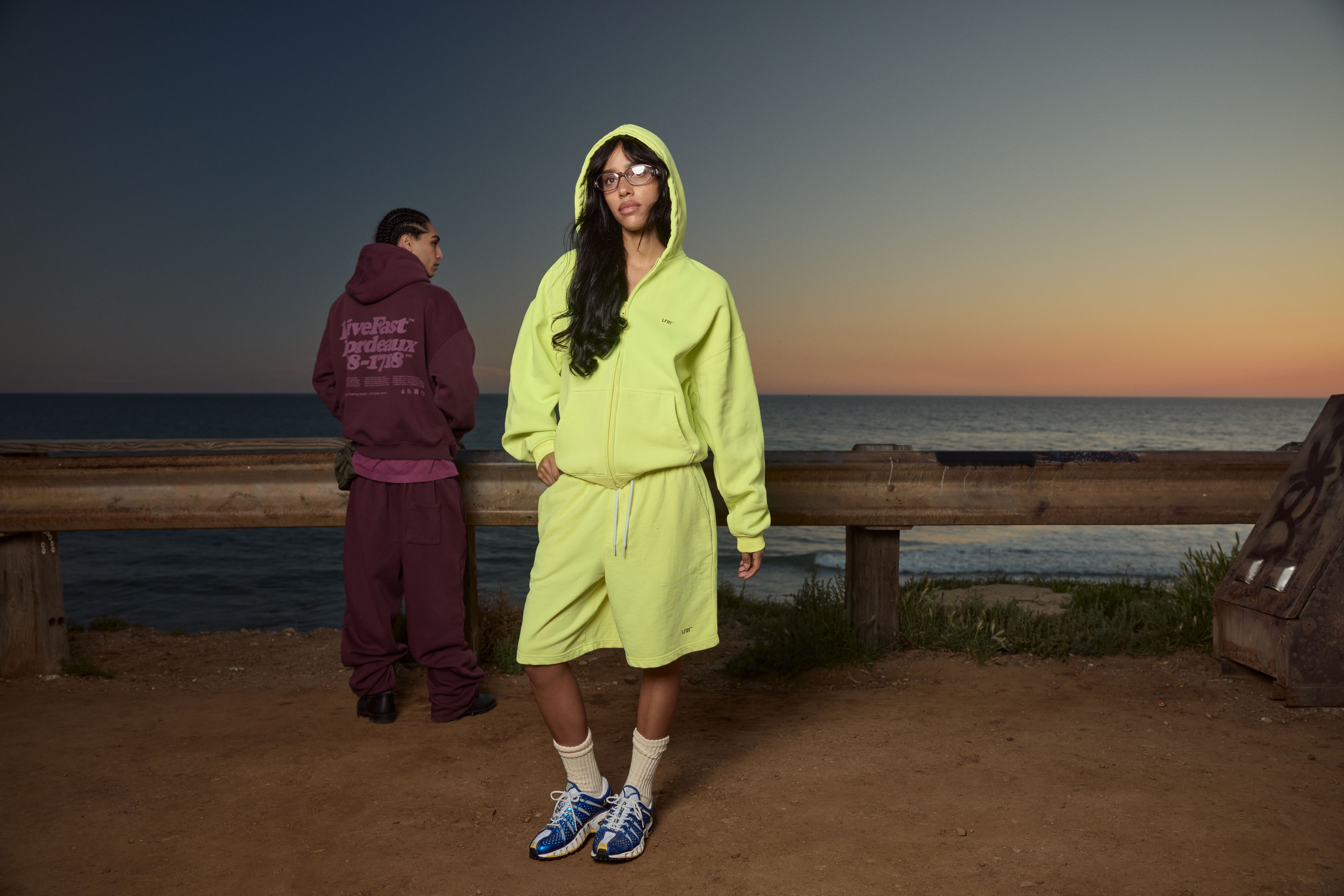 The new Basics 7 Collection, styled by Veneda Carter, features a wide range of bold and fresh seasonal colors alongside reimagined LFDY classics. Staple pieces like hoodies, tees, joggers, and shorts are updated with bold new colorways and seasonal tones. Neon accents define key styles, while rich bordeaux and purple shades add depth and contrast throughout the collection. Returning pieces such as the Basic Evidence Hooded, along with new Basic +49 and Basic LiveFast prints, arrive in new and faded colorways, refreshed for the season.